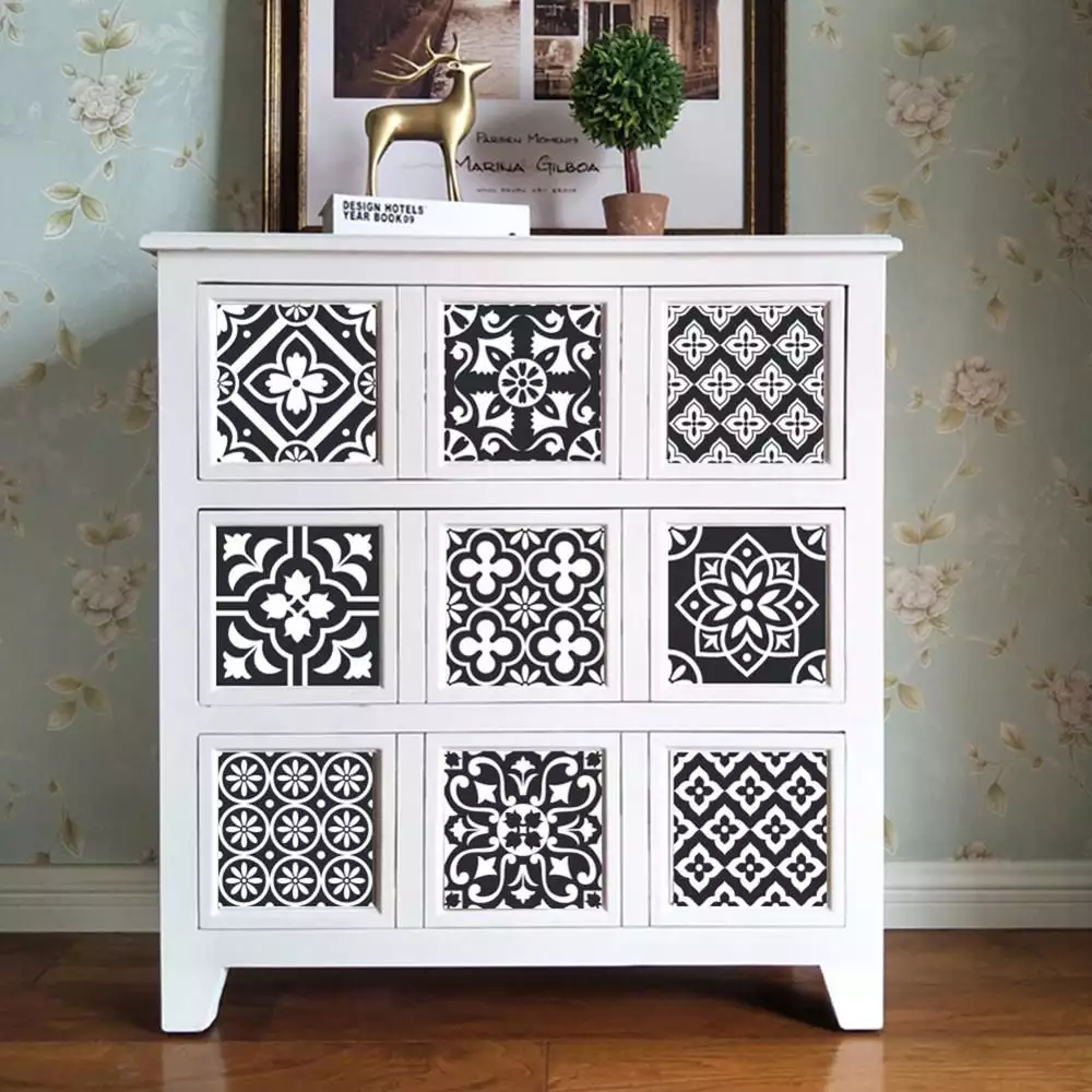 Po dokončení všech operací je třeba nechat díly zaschnout do 24 hodin – přesná doba závisí na typu použité tapety, lepidla a laku. Nyní můžete aktualizované povrchy ozdobit nálepkami a šablonami. Poté můžete nasadit nové úchyty a příslušenství a skříň sestavit. To je vše, lepení je dokončeno, můžete naložit své věci a obdivovat aktualizovaný kus nábytku v nově zrekonstruované místnosti!