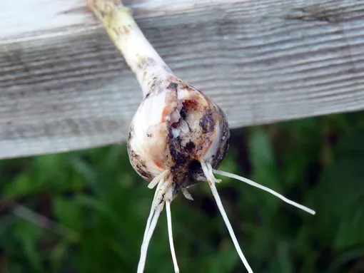 Obecně platí, že vysoká vlhkost nejčastěji vede k odumírání, hnilobě cibule uvnitř nebo na bázi v zemi.